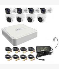 Hikvision 8 Channel DVR 2MP Camera 100M Cat6 Cable CCTV Kit - 8 × 2MP fixed mini bullet cameras with 1080p resolution, up to 20m IR night vision, IP67 weatherproof rating. The 4-channel DVR supports H.265 Pro+ compression,and up to 5 IP camera inputs (up to 2MP). Also included are 8 × baluns (Pairs), 8 × DC power connectors, and 1 × Securnix 8CH power supply-providing everything needed for a professional analog CCTV installation using Cat6 cable.