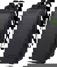 Port Eco Chicago Evo Expandable Backpack in Black offers versatile storage with an adjustable capacity from 6L to 14L, fitting laptops up to 15.6". Made from water-repellent recycled r-PET materials, it combines eco-friendly design with reinforced, ultra-comfortable straps and handles. Additional features include a telescopic suitcase handle strap and ergonomic metal pulls for enhanced convenience.